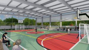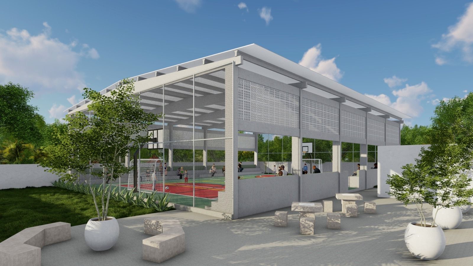 A escola conta agora com quatro blocos estruturados em salas de aula, informática, leitura, multiuso, professores, recepção, cozinha, refeitório e banheiros acessíveis.