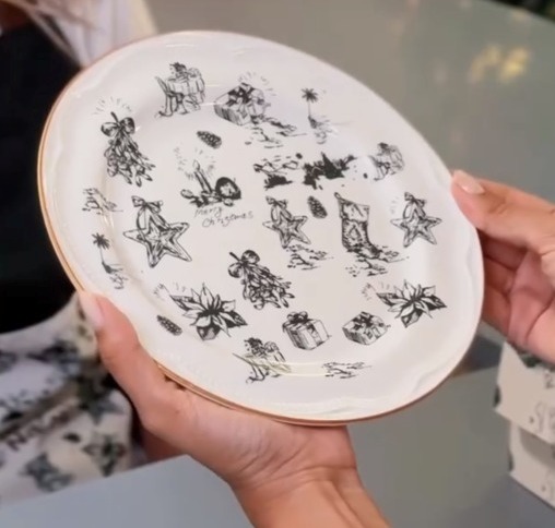A louça exclusiva foi cuidadosamente desenvolvida para a campanha, trazendo uma estampa Toile de Jouy criada especialmente para o MAG Shopping, com elementos que remetem à beleza do shopping à beira-mar e à essência do Natal. O design sofisticado é finalizado com filete dourado, reforçando o refinamento da peça.