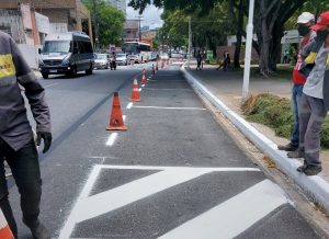 Agora, a faixa de uso do transporte público foi adiantada por cerca de 100 metros. Além de demarcar as vagas, a equipe da Divisão de Sinalização Viária (DSV) também implantou uma área de giro para os ônibus que passam pelo Mercado Central e seguem pela Rua Rodrigues de Carvalho. As mudanças aconteceram próximo ao restaurante Cassino da Lagoa.