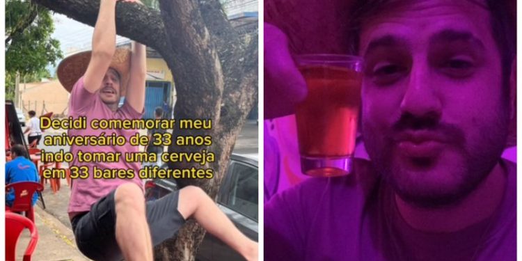 Algumas pessoas aproveitam o aniversário para comemorar de uma forma completamente diferente do convencional. E foi exatamente o que o publicitário Juam Martins fez ao completar 33 anos. Em um vídeo publicado no TikTok, o rapaz reuniu os amigos para beber cerveja em 33 bares diferentes.